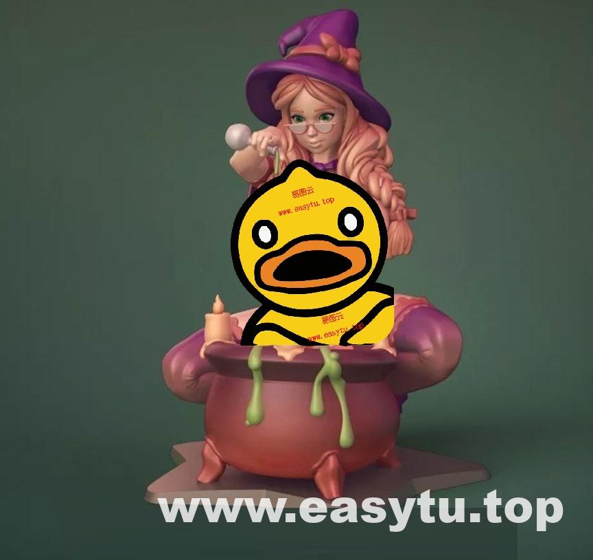 女巫,3D打印模型文件,STL高精模型文件,分件模型。人物是一体的,底座和瓦缸共三个文件。电子文件具有可复制性,售出不退。