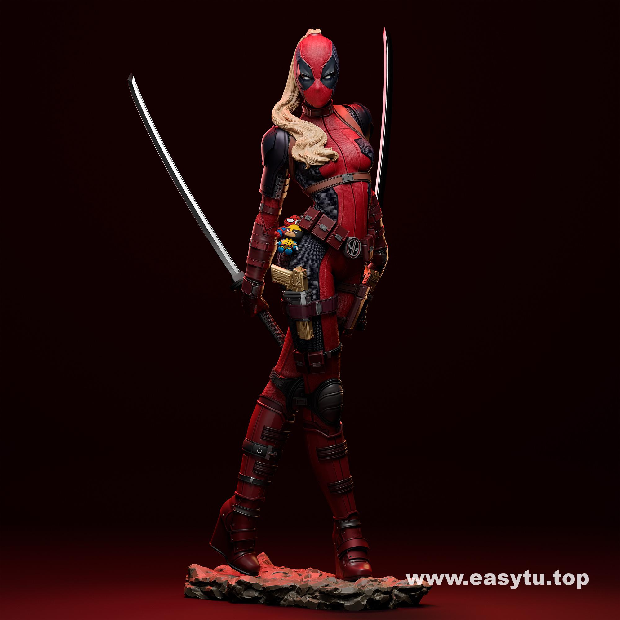 漫威女死侍,3D打印模型,STL文件高精模型,分体模型。