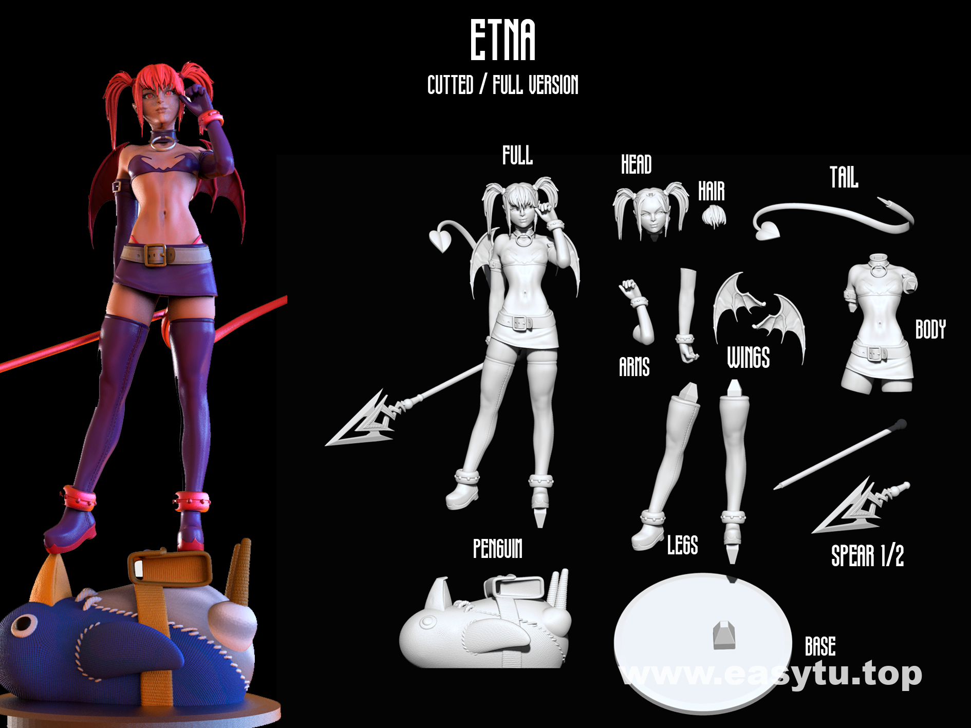 魔界战记-艾多娜H,3D打印模型[文件!非实物],STL文件高精模型文件,分体模型。电子文件具有可复制性,售出不退不换。