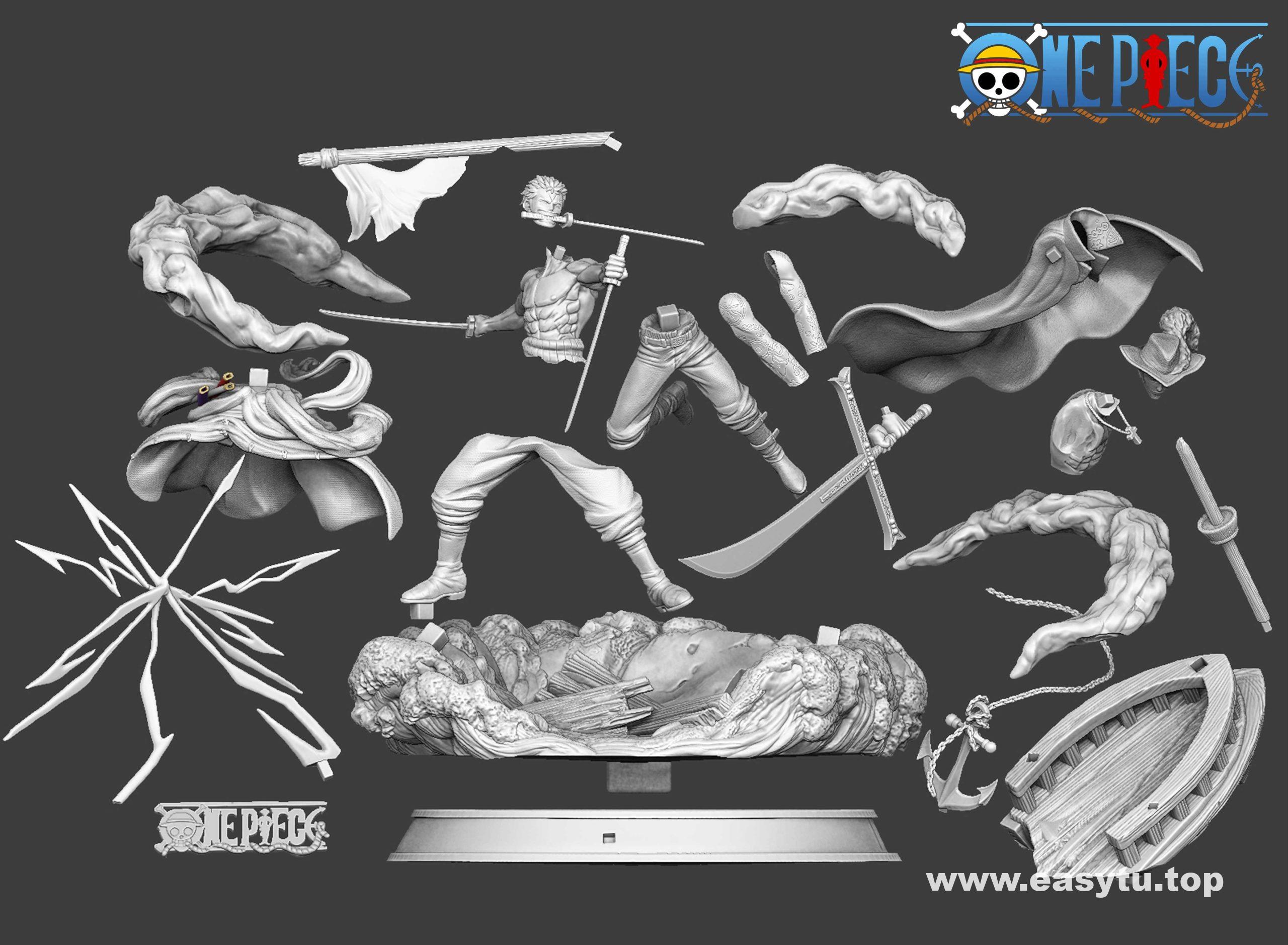 海贼王角色索隆VS鹰眼,高精模型,分体模型