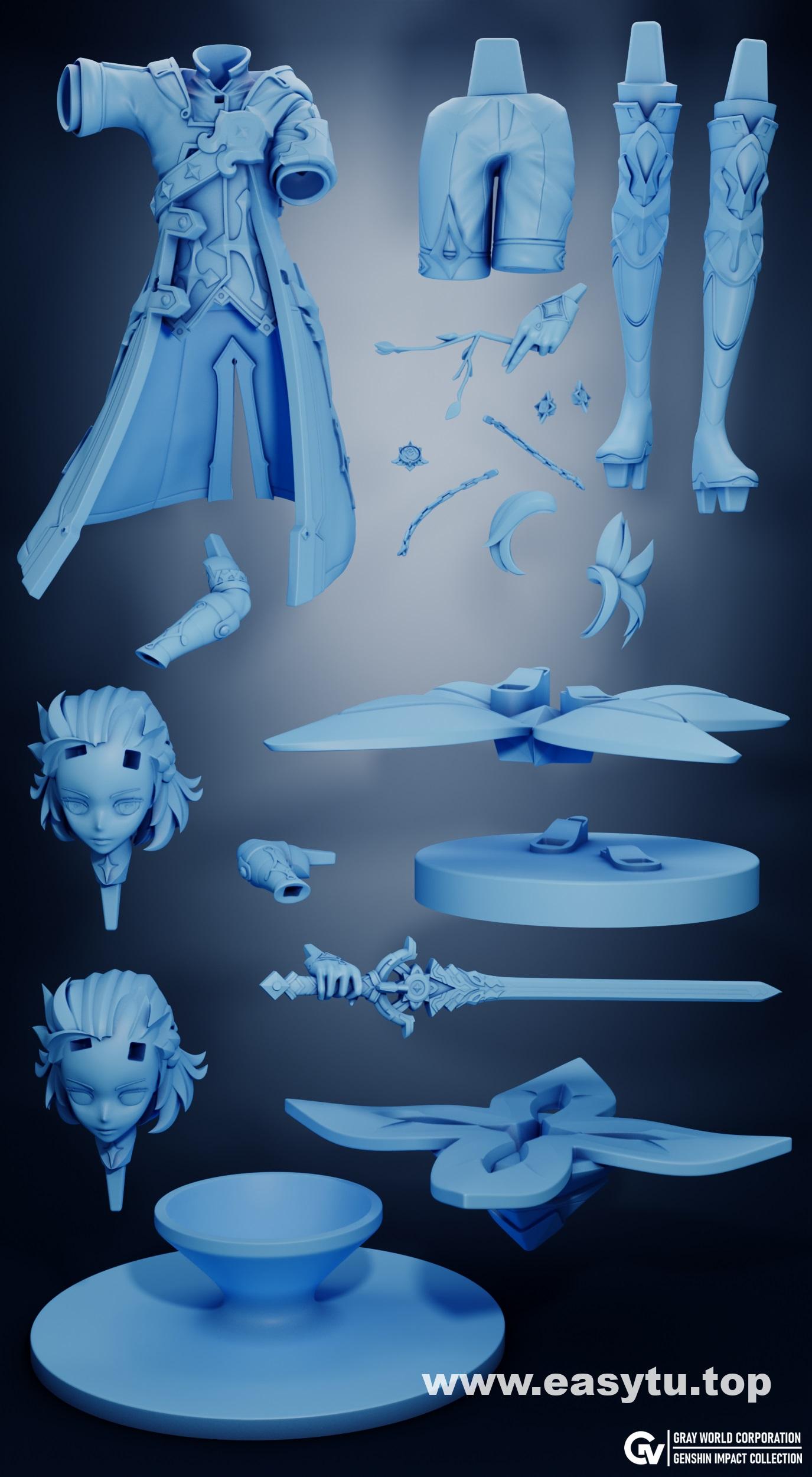 原神游戏角色阿贝多,3D打印模型,STL文件高精模型,分体模型
